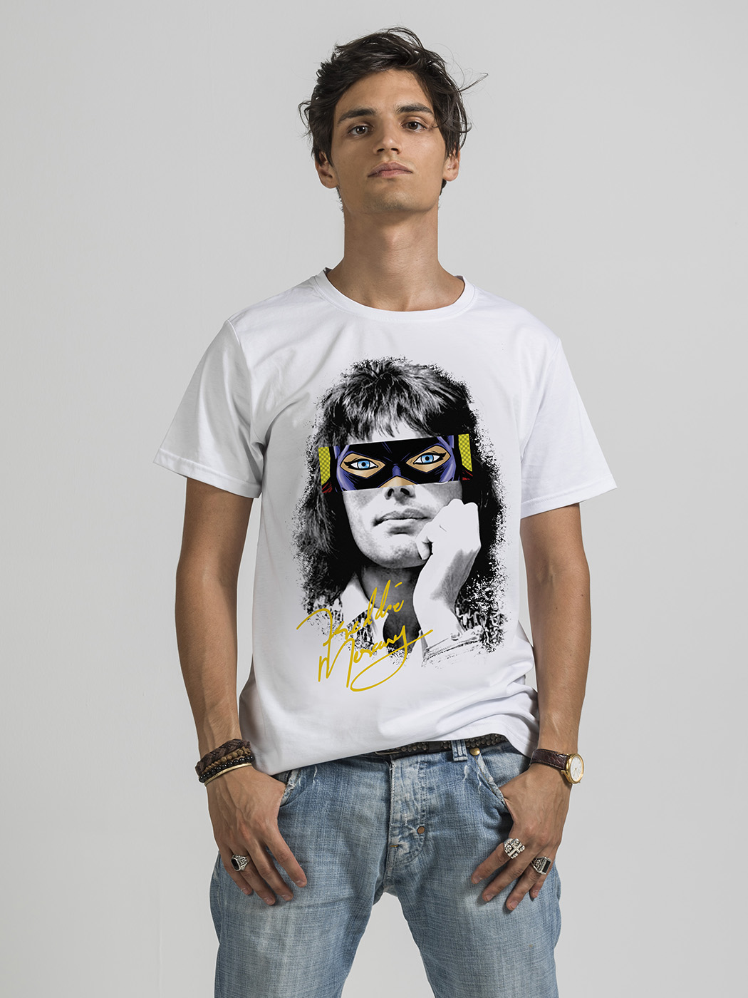 Le pop stars e i supereroi sono i miti del nostro tempo. La Collezione Super Heroes nasce dall’idea di creare un medley grafico che li associa in modo ironico e trendy. I loro “super” poteri sono il carisma, il talento, la creativitа e sicuramente la trasgressione!